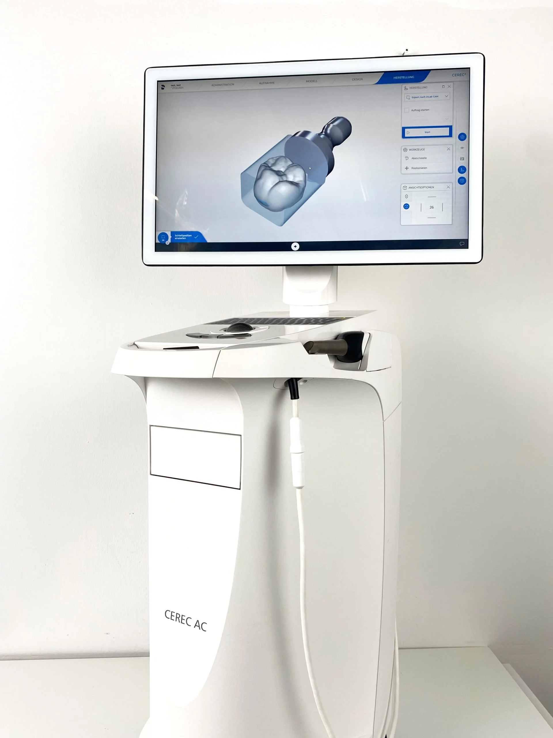 Le CEREC mCX est une unité de fraisage qui fabrique directement au cabinet vos restaurations dentaires (couronnes, inlays/onlays, facettes). Grâce à cette machine de précision, la pièce est créée rapidement à partir de l’empreinte numérique, permettant des soins plus rapides et parfaitement adaptés à votre bouche.